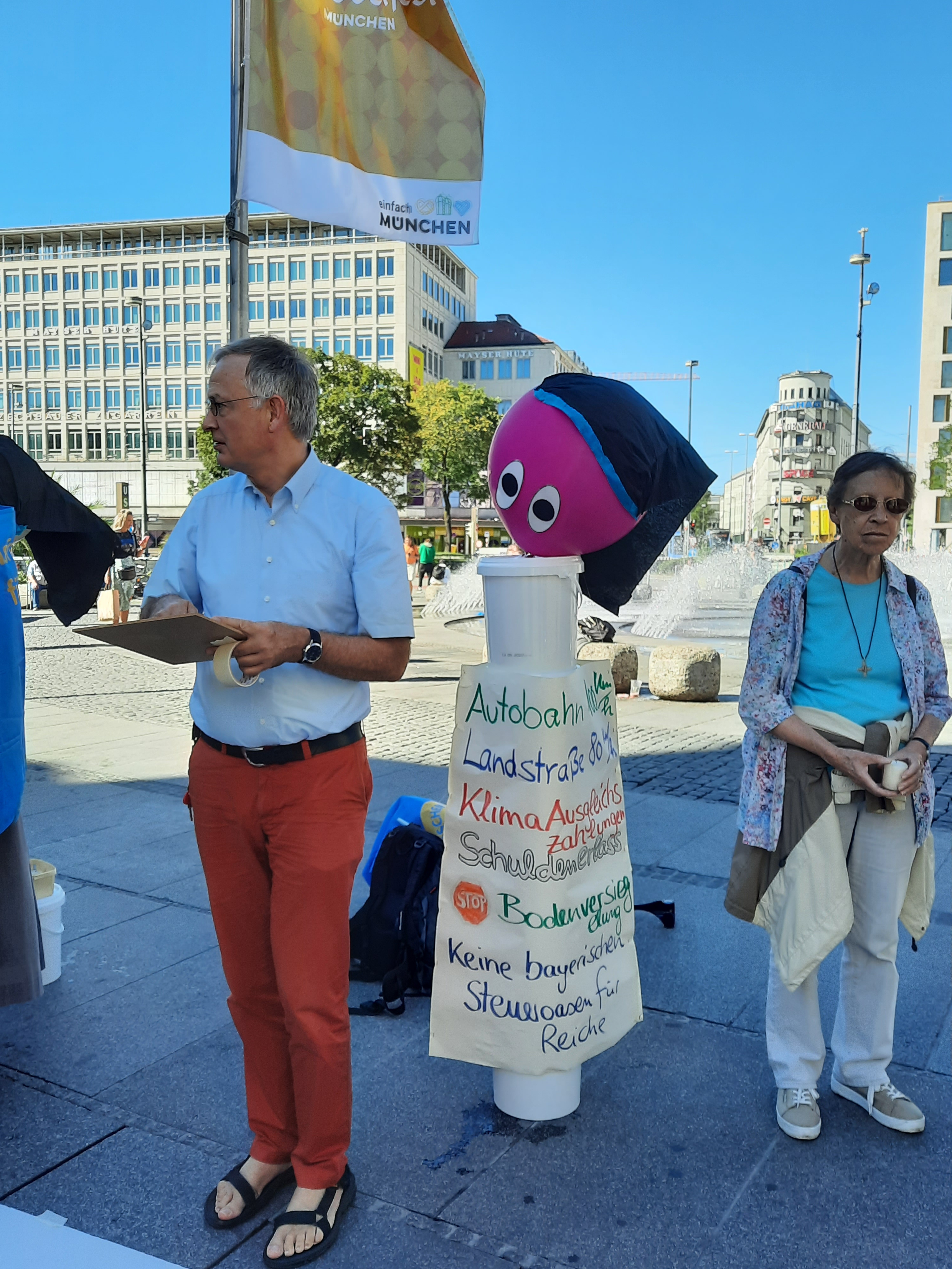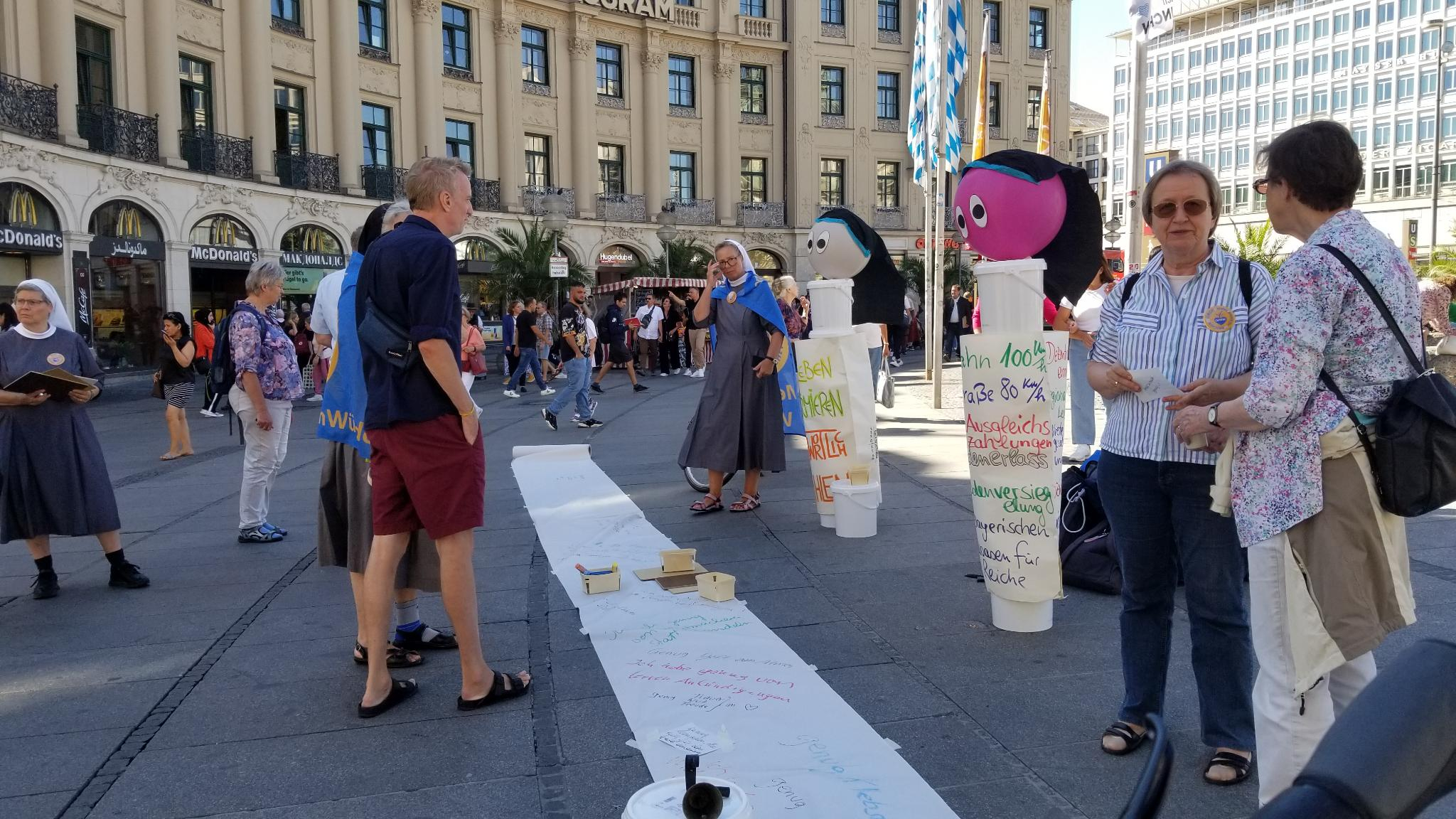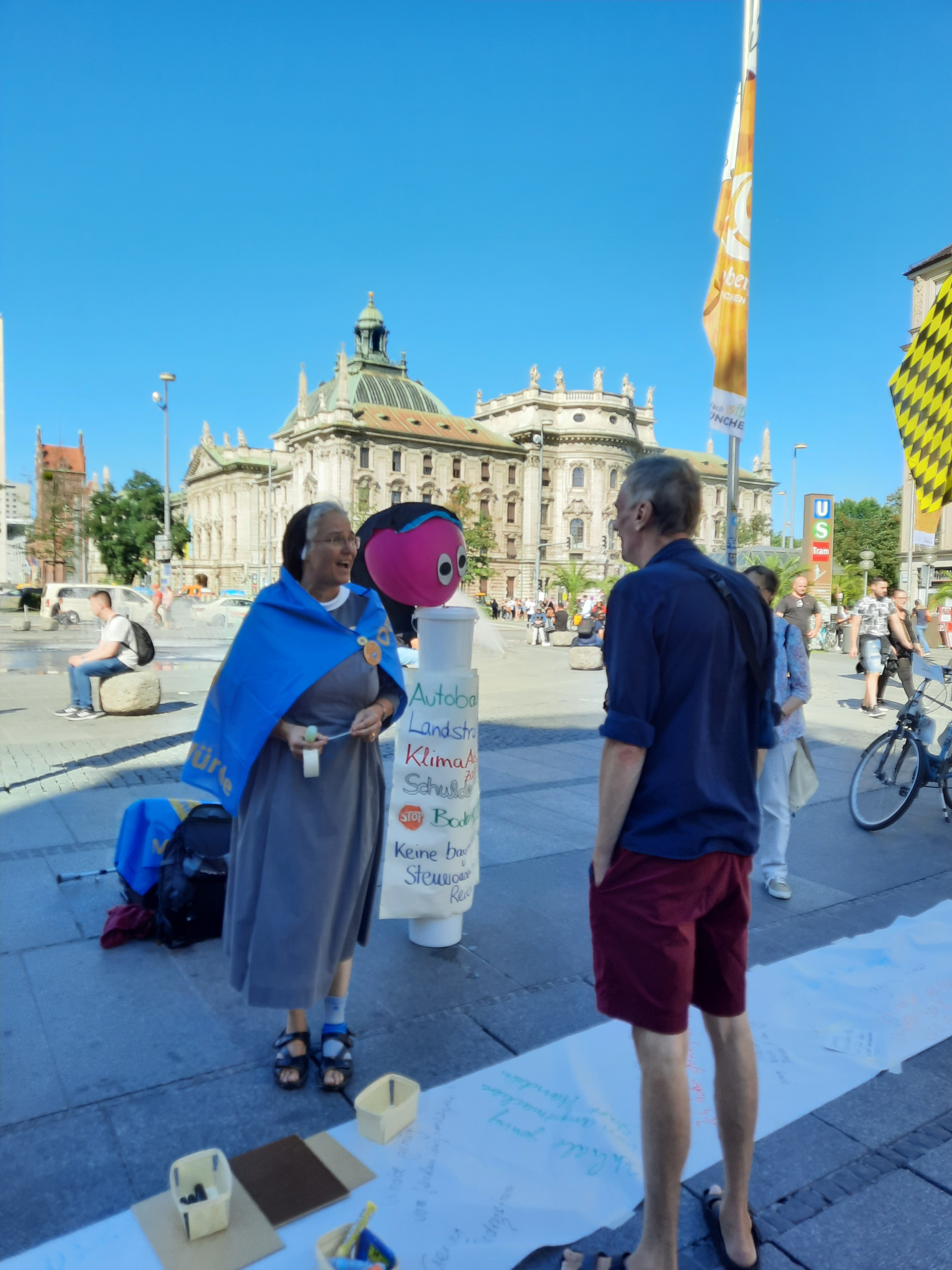 Um 5 Minuten vor 12:00 Uhr startete unsere KlimaAktion am Karlsplatz/Stachus in München bei strahlendem Sonnenschein.