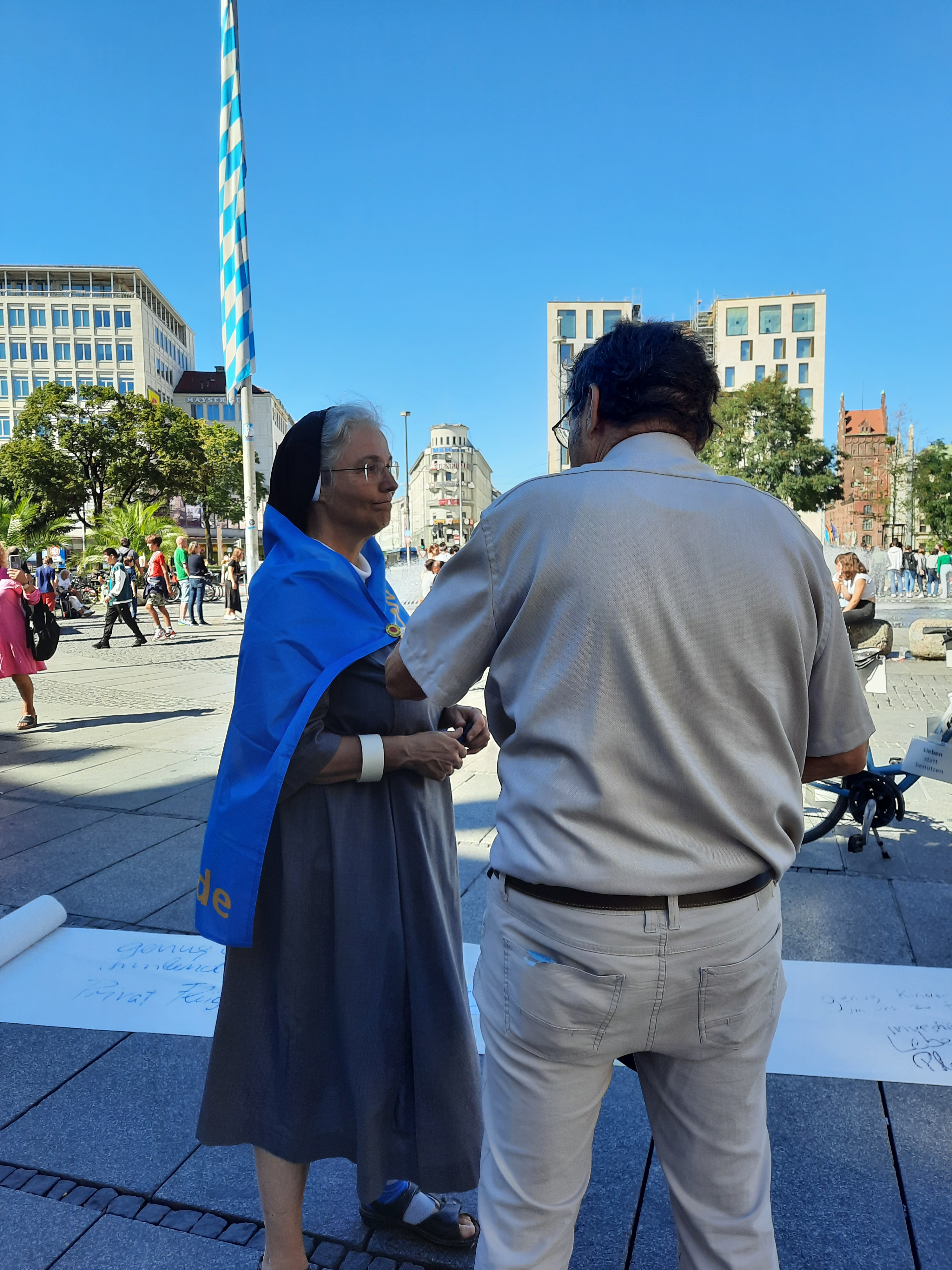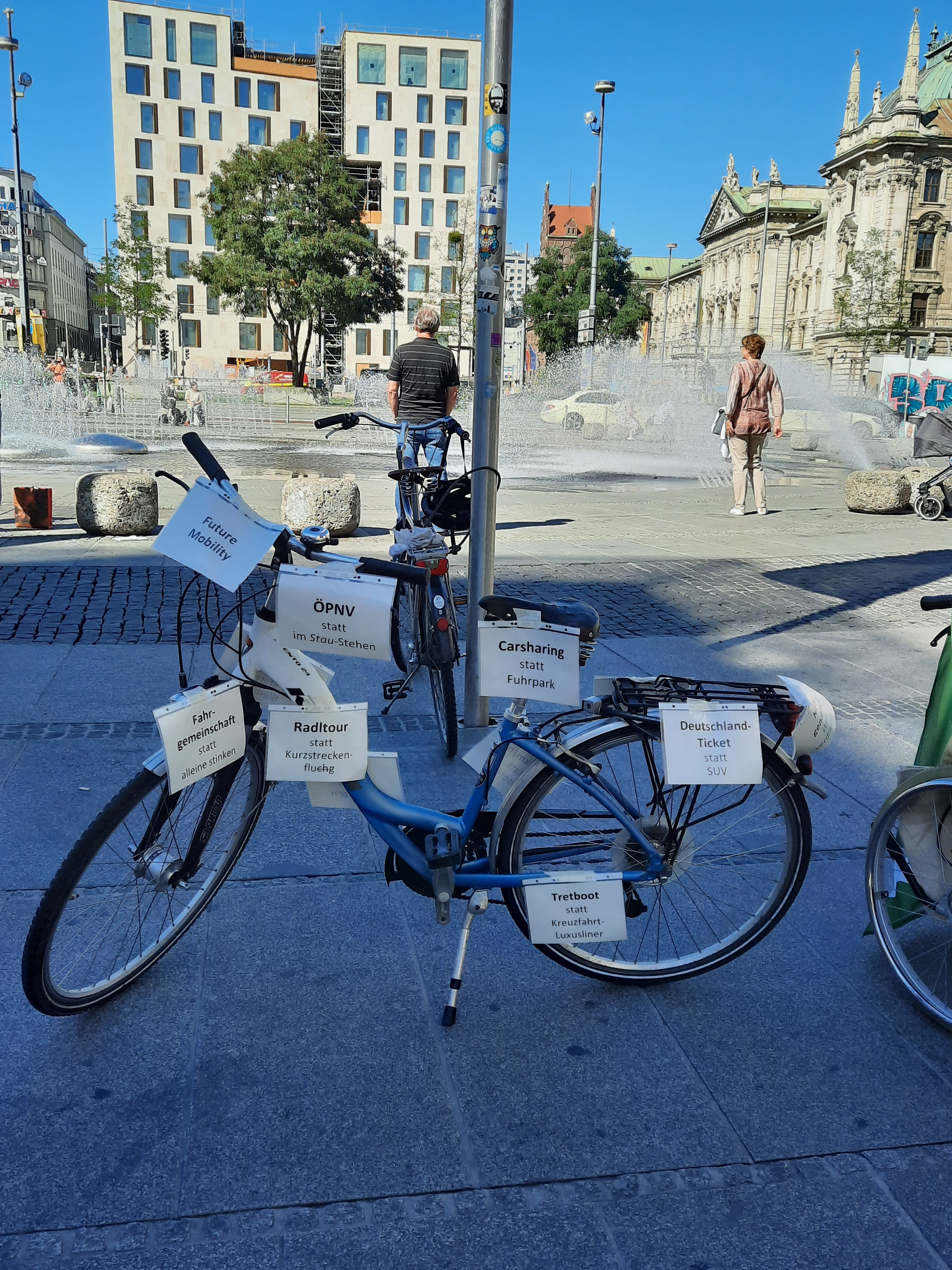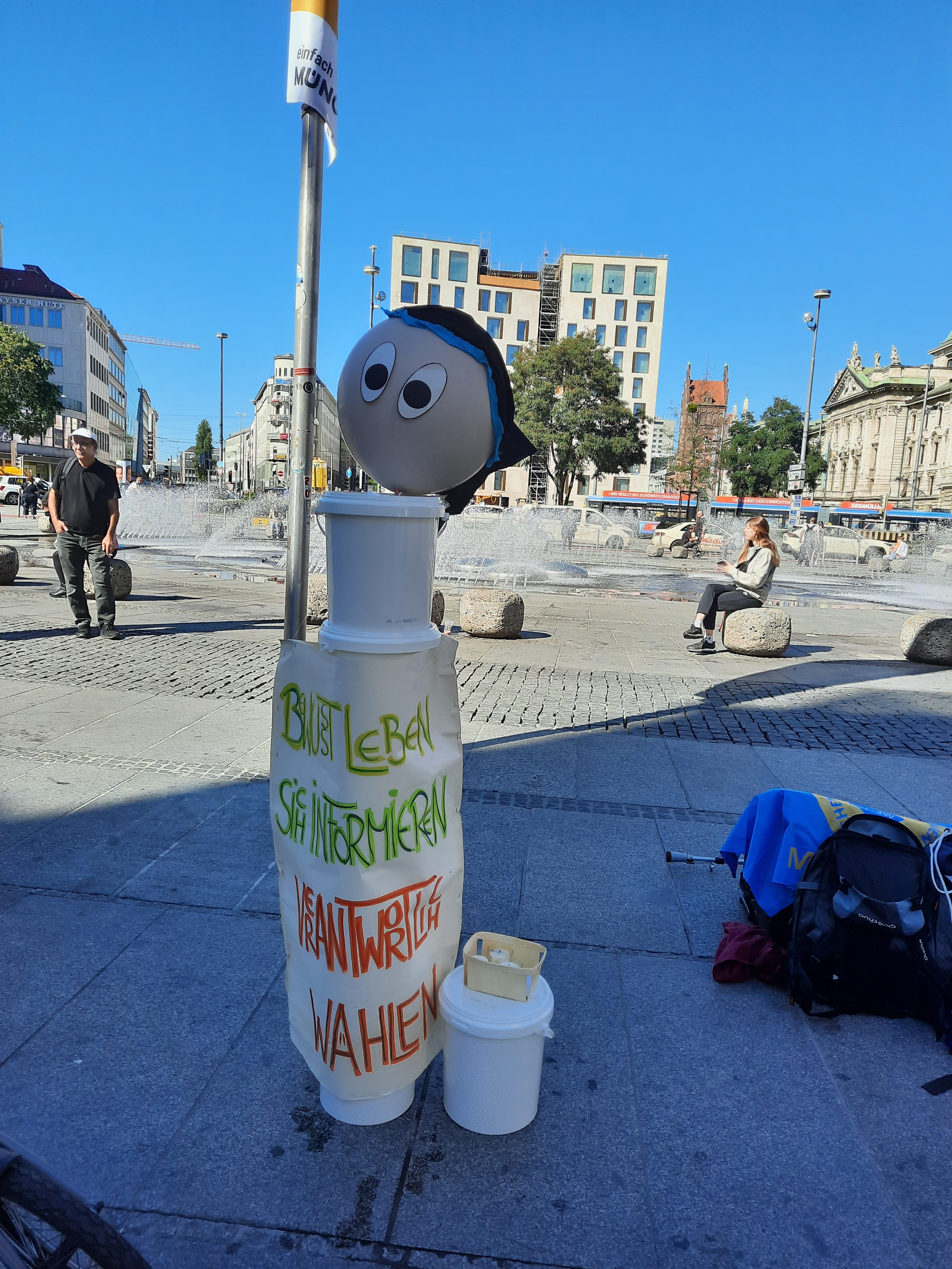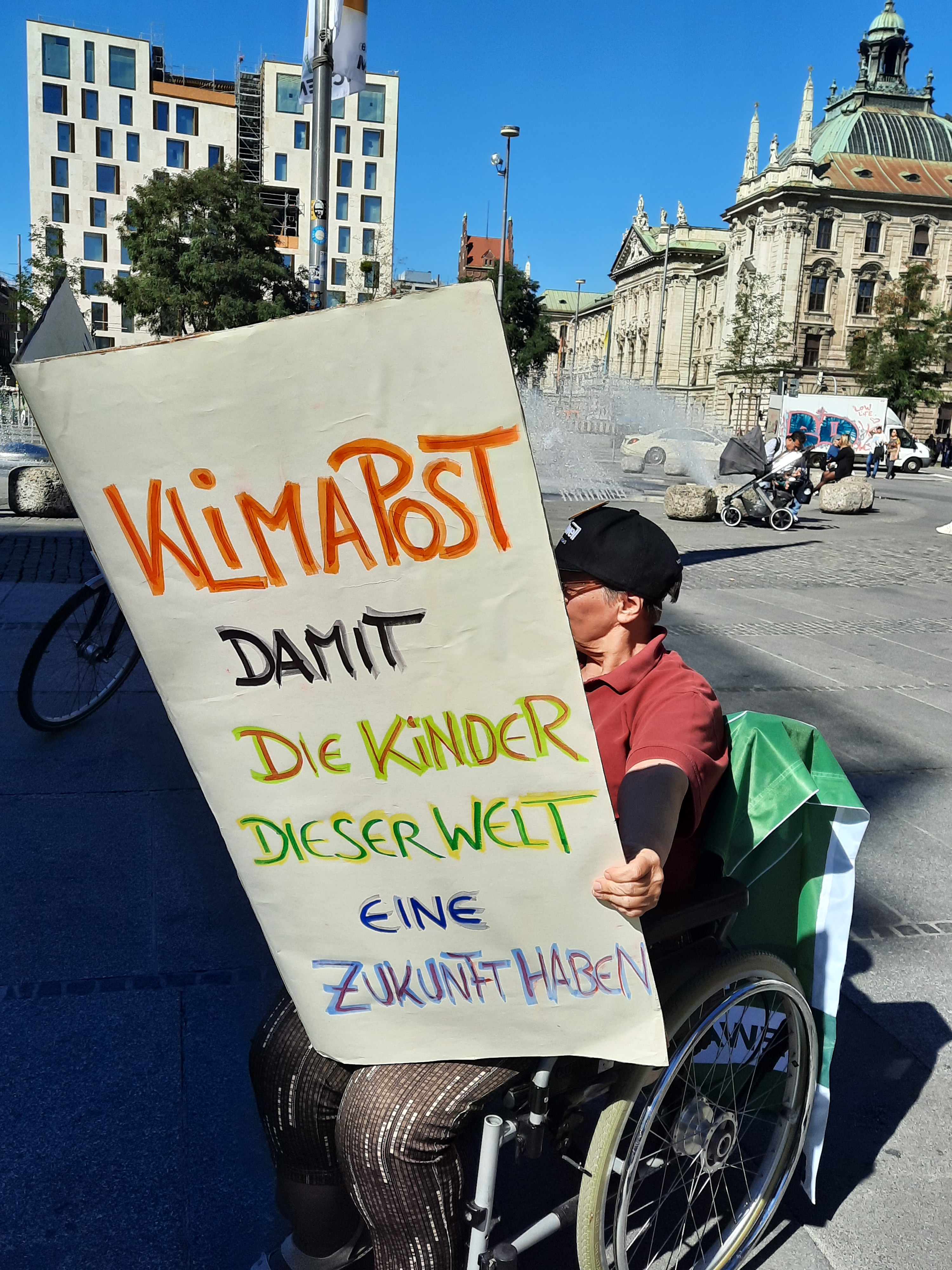 Um 5 Minuten vor 12:00 Uhr startete unsere KlimaAktion am Karlsplatz/Stachus in München bei strahlendem Sonnenschein.