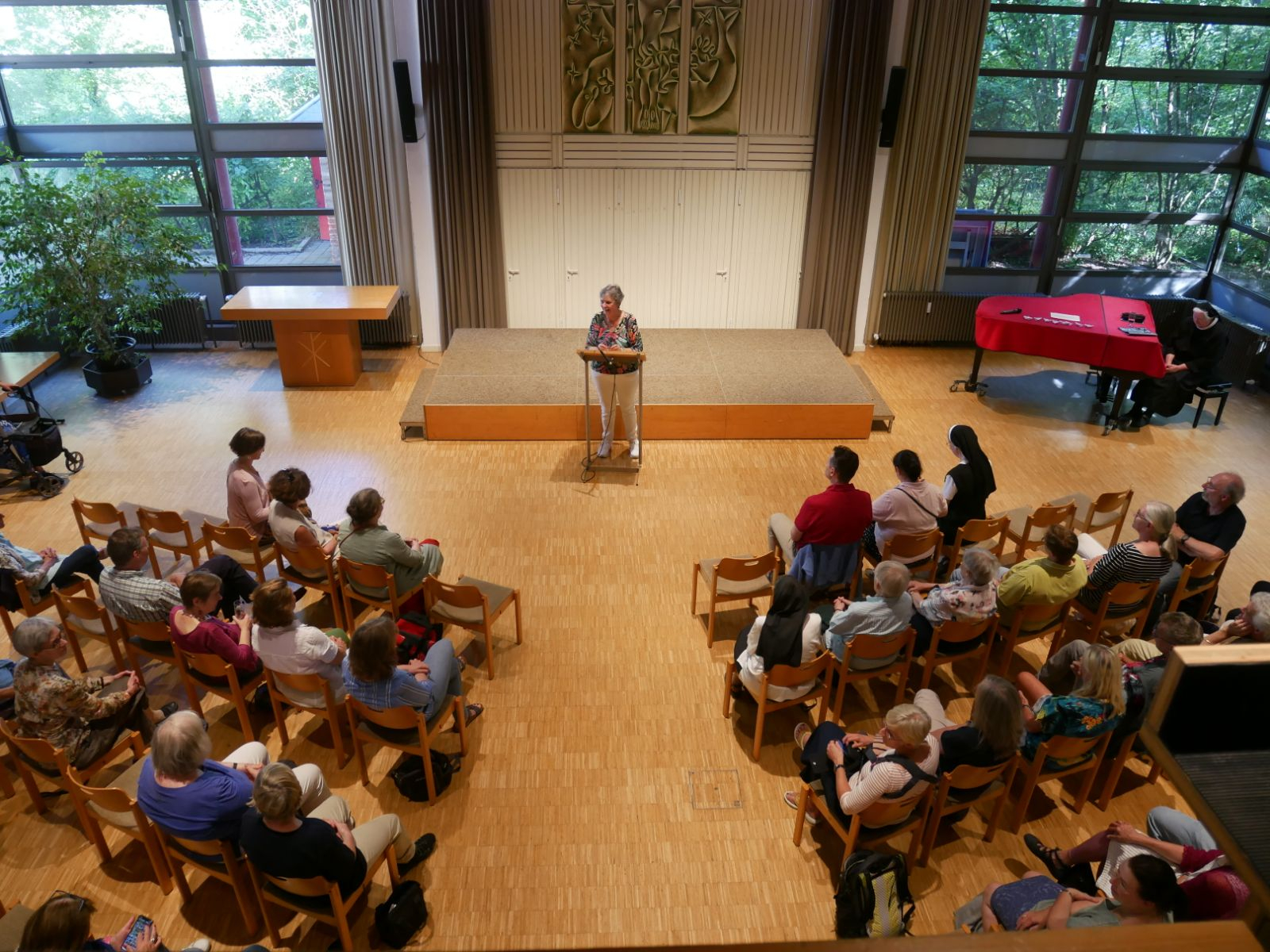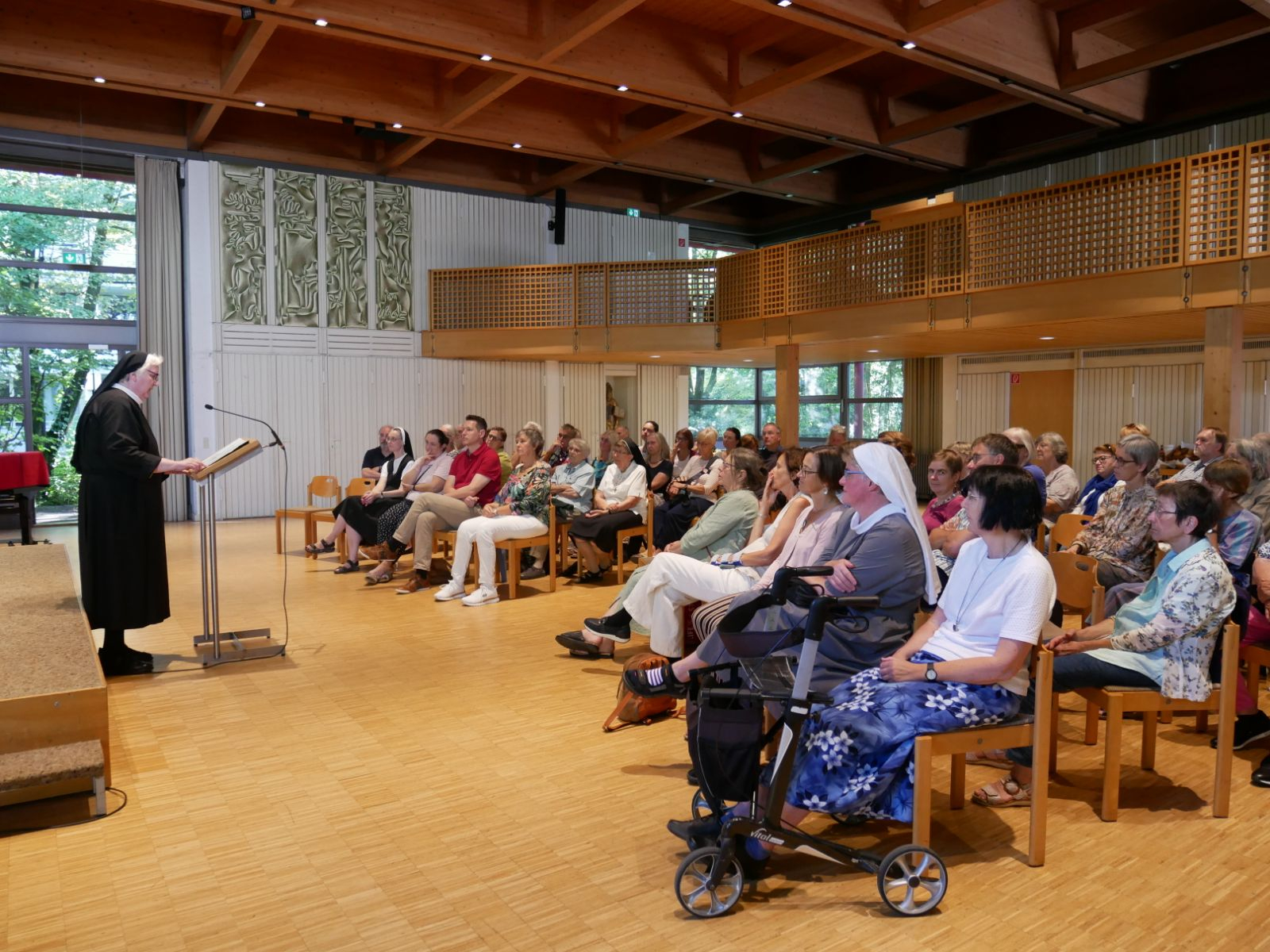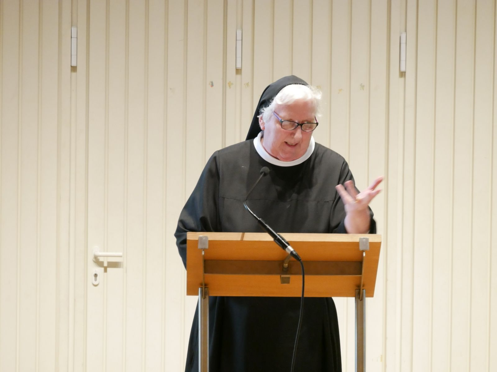Zunächst sprach Sr. Philippa Rath zum Thema „Gastfreundschaft“. Danach entwickelte sich ein lebhafter und anregender Austausch, der die Aktualität des Themas und die unterschiedlichen Erfahrungen der Anwesenden aufzeigte.