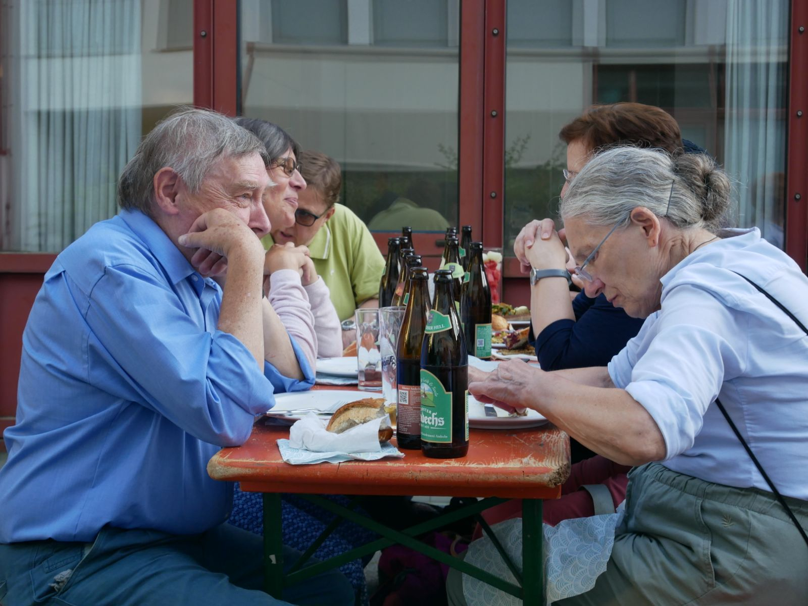 Nach diesem inhaltlichen Teil wurde bei Würstchen, Grillkäse und Salaten aller Art bei abendlichem Sonnenschein an den Tischen eifrig weiter diskutiert und auch der gesellige Austausch kam nicht zu kurz.