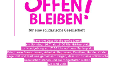 Mehr als 100 Organisationen und weit mehr als 200 Privatpersonen unterstützen die Kampagne „Offen bleiben“ (offen-bleiben-muenchen.de). Wie viele Menschen und Organisationen wollen auch wir als Ordensschwestern für Menschenwürde die Abschottungspläne der Bundesregierung und der EU nicht hinnehmen.